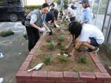 担当の保護者の方にお集まりいただき、学校の花壇に花を植えました。