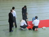 最後に新三年生の有志が赤じゅうたん敷きと椅子並べを行ってくれました。卒業式と同様にキビキビと動き、準備を進めてくれました。