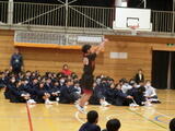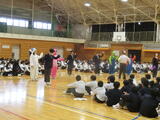 生徒会役員が着ぐるみを着てダンスで新入生を歓迎しました。