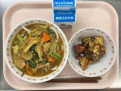 牛乳 カレーうどん 大学芋 |