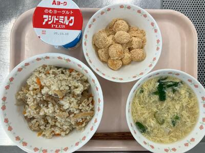 のむヨーグルト 金平ごはん 里芋いりかきたま汁 月見団子 【十五夜献立】 |