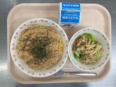 牛乳 ツナおろしスパゲティ ごぼうチップサラダ |