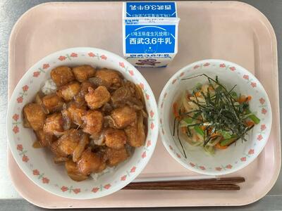 牛乳 まぐろの照り焼き丼 和風のりのりサラダ |