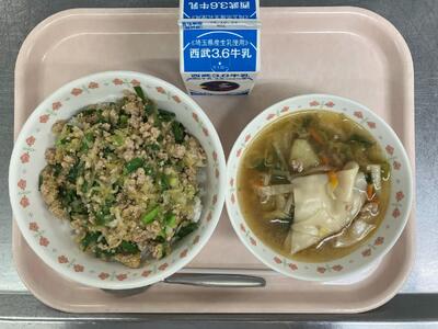 牛乳 包まないぎょうざ丼 ワンタンスープ |