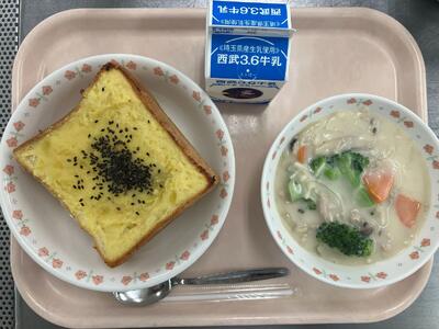 牛乳 おさつトースト きのこのクリームスープ |