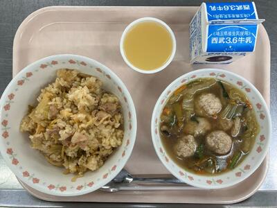 牛乳 キムタクごはん 肉団子のスープ りんごゼリー 【長野県の郷土料理】 |