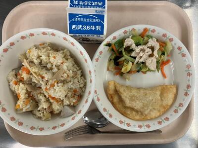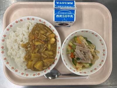 牛乳 おさつカレーライス れんこんサラダ |