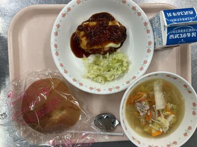 牛乳 チーズバーガー 白菜のスープ |