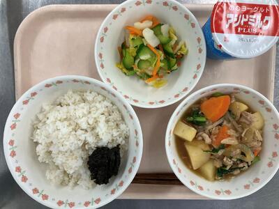 のむヨーグルト 麦ごはん のりの佃煮 肉じゃが 白菜の即席漬け |