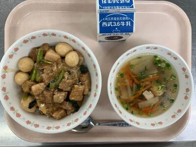 牛乳 カリカリ梅とじゃこのごはん だし巻き卵 豚じゃがみそ汁 |