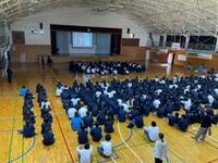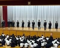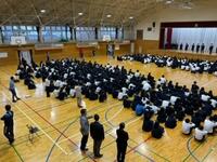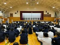式の中で各学年代表の生徒が、今学期の振り返りを全員の前で話す場面があります。