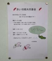 「自分の住んでいる街を良くするための募金です!」という手作りポスターが壁に貼られています。本校でも今日までの3日間、赤い羽根共同募金の取組が行われました。朝、各階を見に行くと、中央委員さんがそれぞれ自分の学年のフロアに立って、募金を呼びかけてくれていました。