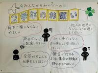 また、その横には「みんなからみんなへの 2学年のお願い」の掲示物も貼られています。「廊下で横にならないでほしい」「声のボリュームに配慮してほしい」といったメッセージは、困っている仲間からの声です。私も、そうした状況は良くないと思う一方、その改善に向けた働きかけは、自治の考えに基づく良い取り組みだと思うので、ひそかに応援しているところです。