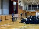 「今のは(腰に)乗ってなかったよ」など、ペア同士で見合いながらお互いに助言し合う、メリハリのある授業でした。
